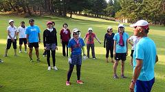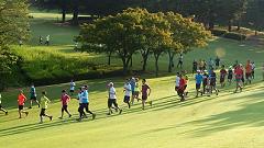 気温も25℃まであがらず、走りやすい日です。昨日の疲れもあるので、今日は調整ランとします。一眼レフカメラを持って、ユックリ・ランで景色や練習の様子を撮影します。居残り練習で、傾斜地を使った上り下りを繰り返すジグザグ走を40分。脚には痛みや疲労感は出ていませんが、31日(水)のゴルフに向けて疲れを抜く時間が必要です。 |