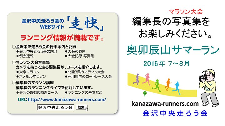 | ■走快:奥卯辰山サマーランニング2016【SS版】 | 金沢中央走ろう会:編集長のマラソン写真集 |