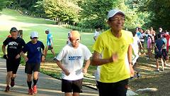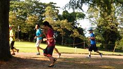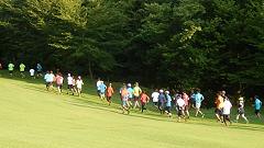 | ●芝生の丘陵公園で走力を高めよう 夏場はマラソンのシーズンオフ。ロードを離れて、アップダウンのある芝生公園で走りをリフレッシュします。 この行事は、編集長のお気に入り。2004年から参加しています。ゴルフ競技会と登山の日程が入らない限り出席します。居残り練習も楽しみの一つです。会員以外の一般参加者も増えてきました。写真集をお楽しみください。 |