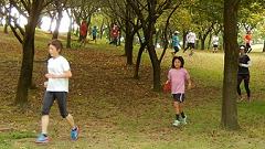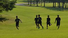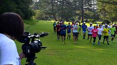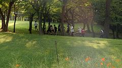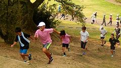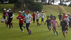 | ■芝生の丘陵公園で、ランニングの基本動作を確認しよう。 |