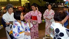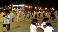 | 2016年4月から、町内会長を担っています。町会行事のまとめ役や町会連合会の主催行事の役員の仕事が加わります。今月は『泉野おどり』。 8月6日朝6時、会場(泉野小学校)で舞台の飾り付けに約1時間半。気温は30℃を超えています。夕方5時に集合し、準備。踊りの開始は、18時30分。陽が沈み、舞台の明かりが映えてきます。最初は寂しかった踊りの輪も大きくなります。 盆踊りの会場に身を置くのは小学校以来のこと。八尾の『風の盆』に出かけたのも、40年前。会場巡回係を兼ねて、撮影します。時間ととに変化する雰囲気を捉えてみました。 アイス配布と抽選会が賑わいのピークか? 再開された踊りで、静かなエンディングを迎えます。 22時、後片付けをして解散です。 |