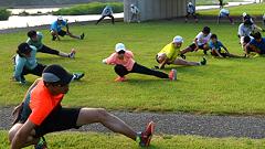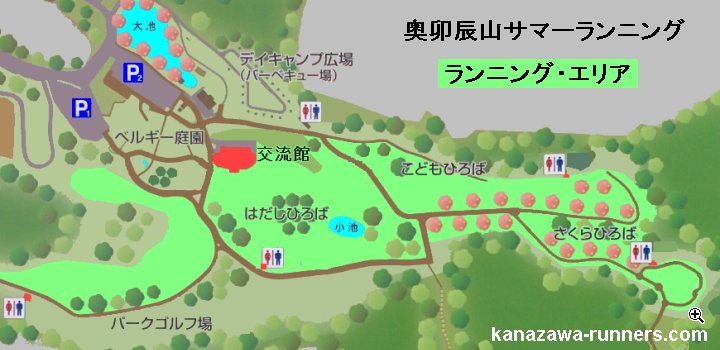 | 【会場変更について】 サマーランニングの会場としている奥卯辰山健民公園は、熊の出没騒動から、近年、開園時間を8時からとした運営をしています。6時から8時までの行事は行えません。騒動が治まるまで、法島町子ども交流センター前犀川左岸河川敷に変更します。7月28日・8月4日は犀川河川敷でおこないましたが、8月11日以降は、奥卯辰山健民公園で行えるようになりました。 ※再度、熊騒動の可能性もあります。会場変更は、WEBサイトで案内します。案内を確認して参加ください。 |