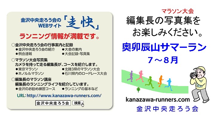 | ■走快:奥卯辰山サマーランニング2019【SS版】 | 金沢中央走ろう会:編集長のマラソン写真集 |