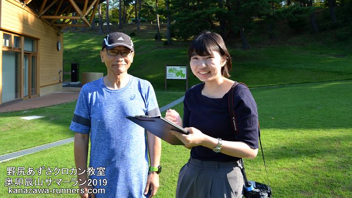 | 新聞社の取材が入りました。インタビューは、野尻あずささんにクロスカントリー走の主要な内容について。参加者からは今秋の金沢マラソンに出場予定の男女1人づつ。マラソン本番に向けて、今回の練習と大会の豊富など。 | ||