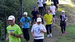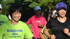 | 【撮影ランを楽しむ】 私は金沢中央走ろう会のWEBサイト編集長です。2004年4月のサイト開設から会の活動や参加したマラソン大会を撮影取材し、写真集にして掲載しています。地域の皆さんにランニングの楽しさを伝えたいとの思いです。会の行事など、一般参加が増えていることから、地域で利用されている実感が持てます。私の取材撮影は、みなさんと一緒に走りながら行います。読者の皆さんにはおなじみです。 サマーランニング・トレーナーの指導やクロスカントリー走の様子を取材します。カメラポジションをとるのに、先回りしたり、通り過ぎた列を追いかけ追い越すなど、坂道のダッシュをします。撮影も兼ねた私なりの練習法です。 【編集長の居残り練習】 私は、撮影で走り足らなかった分、解散後居残りして、追加走を楽しみます。メニューは、1周15分弱のペースで2周。仕上げに、整理体操をする芝生広場のゆるい傾斜を使って、ダッシュ走で走る体の使い方をスキルアップします。この練習方法を教えてほしいという読者には、一緒に練習することもあります。 |