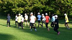 | ●芝生の丘陵公園で走力を高めよう 夏場はマラソンのシーズンオフ。ロードを離れて、アップダウンのある芝生公園で走りをリフレッシュします。 この行事は、編集長のお気に入り。2004年から参加しています。ゴルフ競技会と登山の日程が入らない限り出席します。居残り練習も楽しみの一つです。会員以外の一般参加者も増えてきました。写真集をお楽しみください。 |