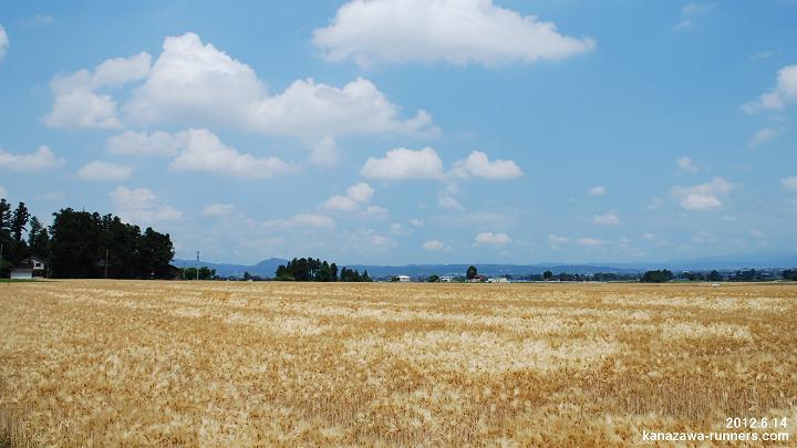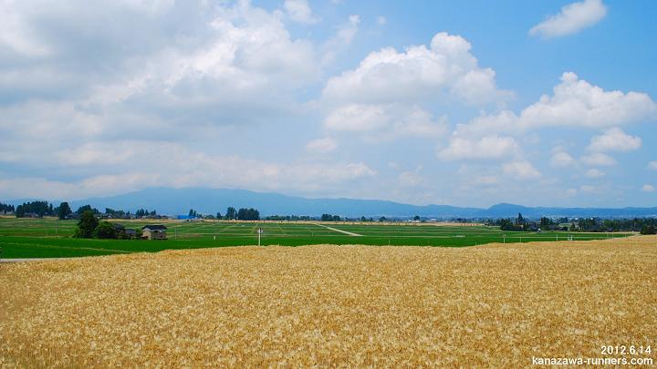 福光から牛岳へドライブ 麦秋と水田の風情を楽しみます。 |