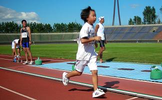 この大会の特徴は、秋のマラソン大会シーズンの初期に、仲間との練習の場として利用できることです。独りの練習にはない緊張感と楽しさが加わります。一般のランナーにはなかなか競技場を走る機会はありません。トラックの感触を楽しみながら脚にやさしい練習ができます。 私は、10時間の部の中央走ろう会で2回の出場枠をもらいました。シーズン初めのスピード練習の一環です。夏季の暑いシーズンは5:30〜6:00/kmのペース。これから涼しくなってきて、大会参加に向けてペースアップと距離走の練習を組んでいきます。まずはトラックを使ってスピード(?)練習。でも今日は暑そうです。それに出場時間も12時で一番暑くなる時間帯です。 タイミング良く空には白い雲が浮かんで適当に日陰をつくってくれます。30分間でのトラック周回数は15周(6km)でした。トラック1周ごとのラップ計測ではコンスタントに2分ペースで、バラツキは4〜6秒以内です。この気候で目標通りの平均5:00/kmペースでいけたので、今日の成果はまずまずというところ。ハーフでは5:30のペースはなんとかなりそうな感じです。 |