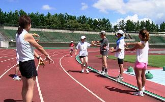 | ■30分間走り、次走者にタッチでリレー。 | 写真集 |