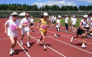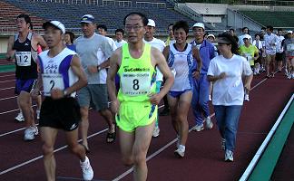 | 10時間リレーランニングは30分間走を20人でリレーし、最長距離を走ったチームが優勝です。これからスポーツの秋。マラソン大会が目白押しです。チームで練習するには恰好の機会です。14チームが参加し、シーズン初めのランニングを楽しみました。 10時間の長丁場です。残暑の30℃の予報でしたが、早朝の雨で涼しさを呼び戻し、午前中は秋空の雲が太陽を適当にさえぎってくれます。午後からは雲も無くなり30℃の残暑でしたが、湿度も低く少し強めの風が続いたことで、まずまずの日和となりました。 写真マラソン2006:リレーランニング編は、チームで楽しむランナーをテーマにした特集です。 |