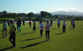 | 金沢市生涯スポーツマンスリーは金沢市の提唱行事で、ランニング部門の健康ランニング大会(長時間走)を金沢中央走ろう会が主催しています。 この大会の特徴は、目標の時間を設定して走ることです。長くゆっくり走る。完走記録証には目標時間と走行距離が記入されます。 |