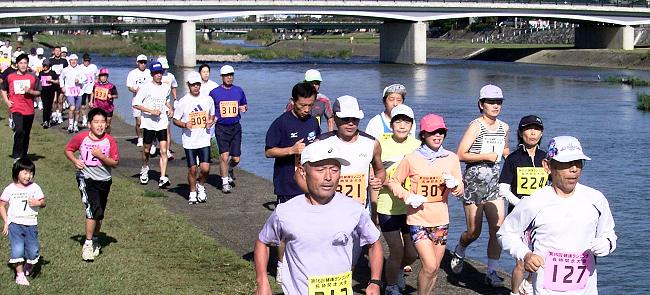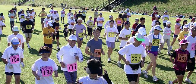 | 91名の方が健康を目指して、日頃の練習の成果を確認しました。笑顔のあふれるマイペースランニング。快い汗の記録をお楽しみください。 | |