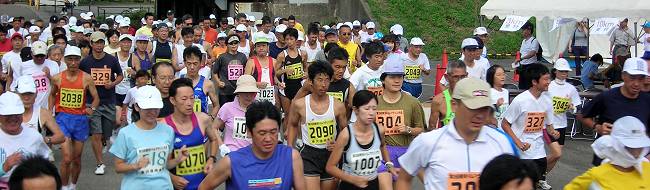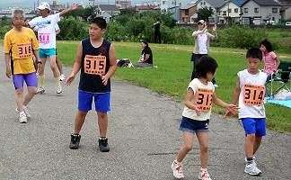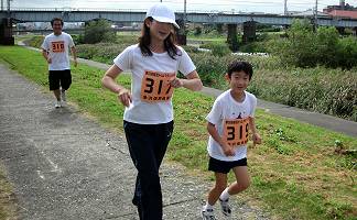 | ●家族や仲間と楽しむランニング。残暑の大会ではマイペースが大切です。 | |||