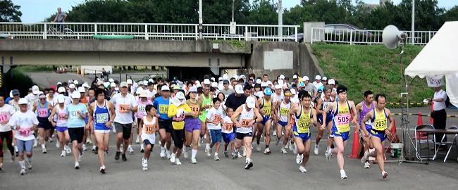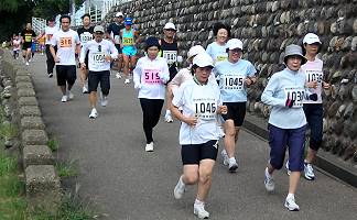 | 健民トリムマラソン大会は石川県健民運動推進本部の主催で、金沢中央走ろう会が主管しています。トリムとは、整った状態の意で、心身の調和と健康増進のため各種の身体運動を行うことを狙いとした大会などに使われています。 この大会の特徴は年齢層が広いことで、今年は5歳から82歳で、会場の最高齢は上流側監察の岩橋さん(90歳)です。こうした健康を謳歌する大会は、全国でも珍しいかもしれません。大会参加を通して、心と体のバランスのとれた健康づくり。さわやかランニングを楽しみましょう。 初秋の好天に恵まれ、暑いランニング日和となりました。今回も、家族で楽しむランニングなど、参加者のマイペースランニングの様子を紹介します。 |