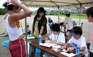 | ゴールすると、着順票を受け取ります。 受付時に渡された完走記録証とこの着順票を係員に提出して、タイムを記入してもらいます。 2005年大会から取り入れたシステムも、スムーズに運営されています。 |