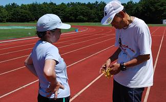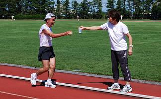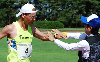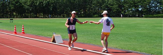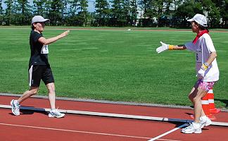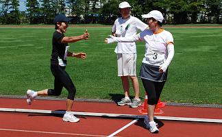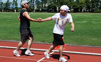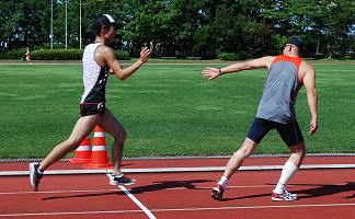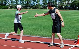 | 第1走者から第2走者へ。タッチでリレーします。 | |