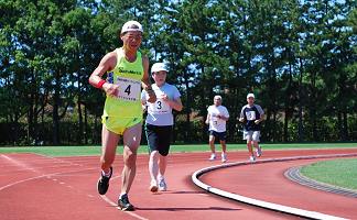 | 10時間リレーランニングは30分間走を20人でリレーし、最長距離を走ったチームが優勝です。これからスポーツの秋。マラソン大会が目白押しです。チームで練習するには恰好の機会です。7チームが参加し、シーズン初めのランニングを楽しみました。 残暑の30℃を越す大会となりました。会場はスタンドのないサブグランドです。風の通りも良く、快晴の青空と緑を背景に走ります。10時間の長丁場、全チームが無事完走することができました。 |