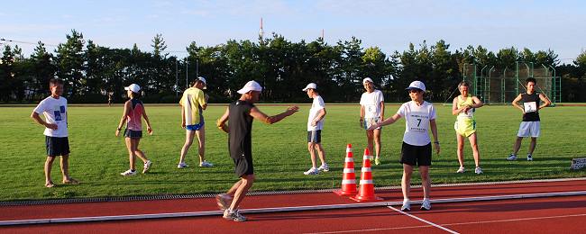 | 30分間走り、次走者にリレーします。リレータイム30秒前、もう1周しましょう。ガンバッテ。 | |