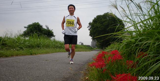 | コース際に咲く彼岸花。ランナーと組み合わせてみました。 |