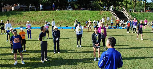 | 秋晴れの体育の日です。各地でスポーツ行事が楽しく行われていることでしょう。今回の参加者は102名。健康を目指して、日頃の練習の成果を確認しようと、マイペースランニングで目標時間を走りきりました。写真記録をお楽しみください。 | |