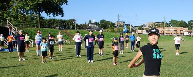 | 健康ランニング大会:スタート(09:00)。児童会館前の芝生広場から4部門同時にスタートします。 | |