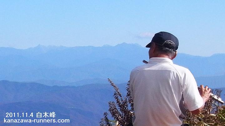 | =2011年秋の山行から=編集長は槍ケ岳を眺めていればご機嫌なのです。 | ||