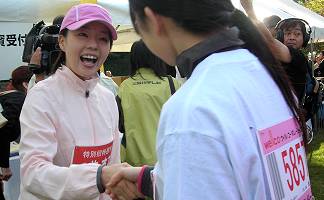 | 招待選手は千葉真子さん。笑顔と大きな声で選手を激励 | 走り終えて | ||||||||||