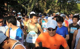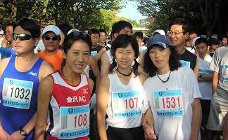 | スタートの列で。昨年優勝のNさんは今回陸連登録で8位 | スタートの列に並ぶ選手たち | ||