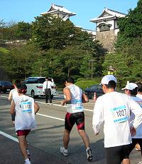| 金沢城の石川門を通過するランナーの列。城周辺の撮影もシッカリできました。 | |||