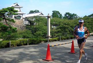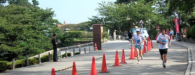 | フィニッシュ会場は、兼六園の蓮池門口。金沢城を背景にラストスパート。 | |