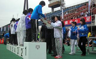 | 表彰式:プレゼンターの中村友梨香選手 | 入賞者の皆さん |