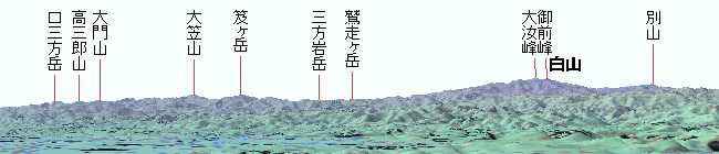 | 犀川に架る赤土大橋付近から望む山波図 |