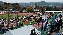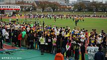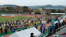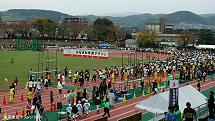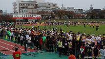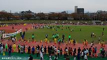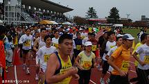 10kmの部のスタート写真をシッカリ撮影しました。トラックを2周し、ゲートを出るところまで、125枚です。 先頭集団がゆっくりランナーを追い越して、団子状態の混雑です。ランナーの皆さんはさぞ走りにくかったかもしれません。 折角たくさん撮影したので、WEB掲載を考えました。 約50枚に絞り、スライドショーを用意しました。 混雑のなかに身をおいたランナーの皆さん。スタンドからみた様子をお楽しみください。 |