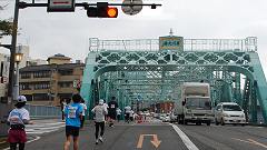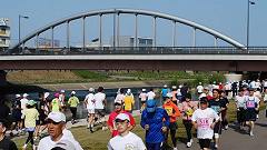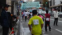 | このルートは昨年の大会に変更された。私が走った1999年の大会はこのルートだったので、元に戻したともいえる。ここでの撮影スポットは犀川大橋。この橋は、犀川に架かる橋で一番の風格を持つ。ランナーを取り込んだ写真を狙う。 | ||