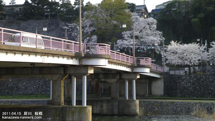 | 犀川の河川敷をランニングやMTBの常用練習場としている編集長。そこに架かる橋は大切な道標だ。大御所は犀川大橋。この鉄橋は、風雪に耐えた貫禄を見せる。マラソン写真集で一番撮影しているのが御影大橋。ランナーの背景にスマートな橋が効果的だ。雪吊橋も形そのもので絵になる。 桜橋からの眺めも楽しめる。桜橋の欄干のピンク色も、桜の時期にみると面白い。真横から見たのでは気づかないが、並んだ縦棒が重なる方向から眺めるとピンク色が際立ってくる。 自宅から犀川河川敷に下るときに使う上菊橋も好きな橋のひとつだ。MTBでの帰路には、橋のベンチで一服することが多い。上流方向の見晴らしが良い。犀川の流れと医王山など四季の変化を楽しむ。健康ランニング大会の大切な背景となっている。 |