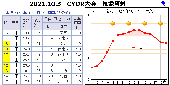 | ■サイアーランニング大会:気象データ=金沢=2021年10月03日=アメダス= |