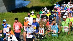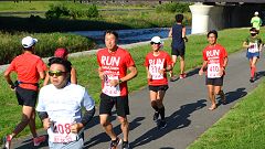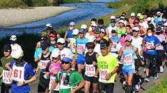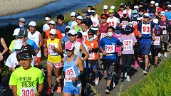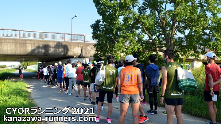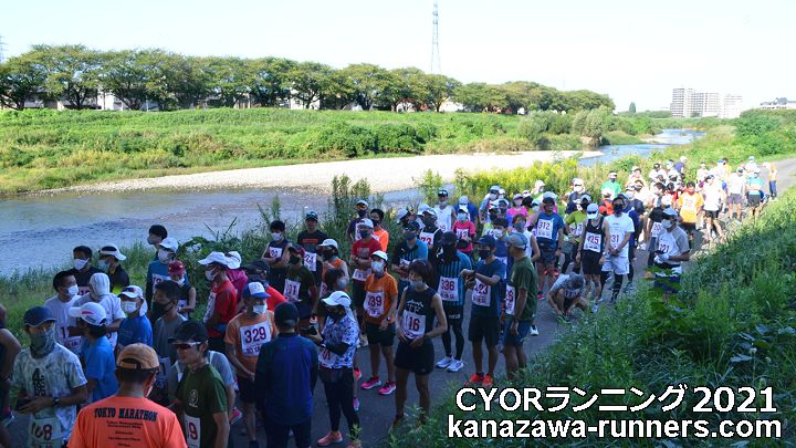 | 秋の犀川河川敷。毎回参加・取材しているCYOR大会。金沢マラソンン2021の開催決定で1ヶ月前の練習の場となりました。2週間前に開催予定で同じコースを使うマラソンに挑戦する会2021は県の指導で中止となり、練習の場を求めるランナーが応募。例年120〜150人程の参加者でしたが今回は300人。運営スタッフは同じなので受付は長蛇の列となりました。 私は大会の最長距離30kmの部に参加しました。快晴、気温は27℃とマラソンには厳しい条件です。少し風があったのが助けとなりました。中央走ろう会からの参加や応援があり、久しぶりに会員と顔を合わせることができました。 |