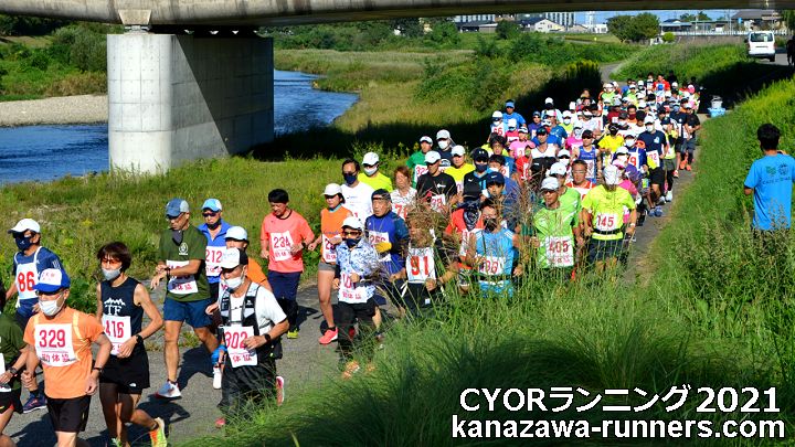 | =自分の記録に挑戦(CYOR)する大会= 石川県勤労者体育協会の主催するランニング種目の大会は、5月:メーデー協賛ロードレースと、サイアーランニング大会の2つです。メイン大会だった7月:能登島ロードレースは2018年大会から現地の地域コミュニティに移管されました。CYORランニング大会のコースは、犀川河川敷のサイクリング路です。 この大会の目的は、 私は、ランニングを始めた2000年からこの大会に参加し、自分の目標タイムを確認しています。そして健康志向のランニングを顔馴染の皆さんと楽しみます。 |