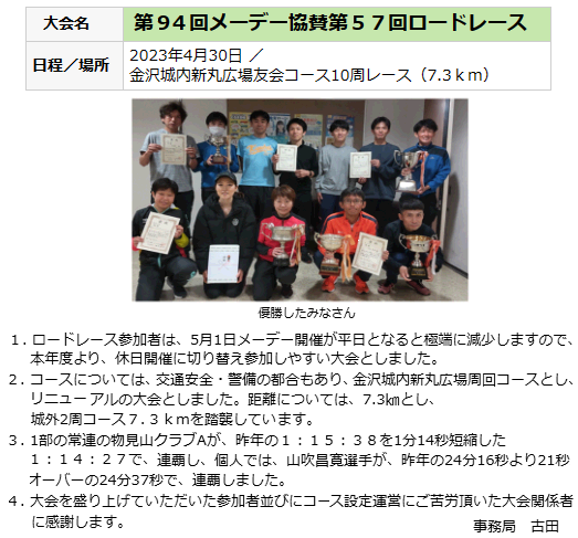 | ■メーデー協賛ロードレースの開催日・コースが変わります。 | 記事:2022.10 |