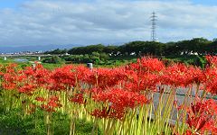 | 彼岸花が満開です | 彼岸花=上流側をのぞむ | 下流折返し付近=下流側 |
