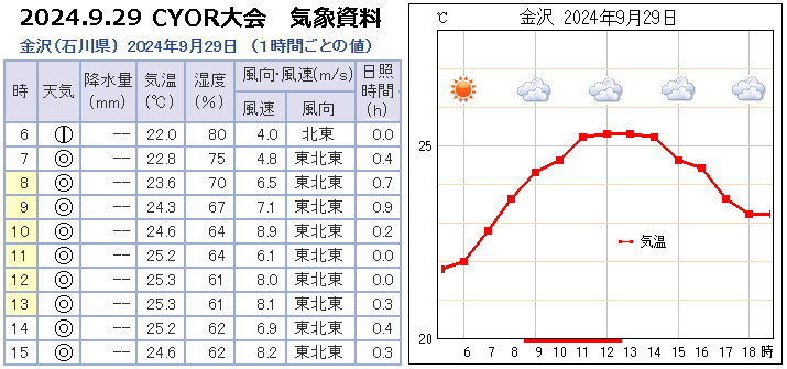 | ■サイアーランニング大会:気象データ=金沢=2024年9月29日=アメダス= |