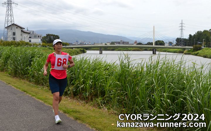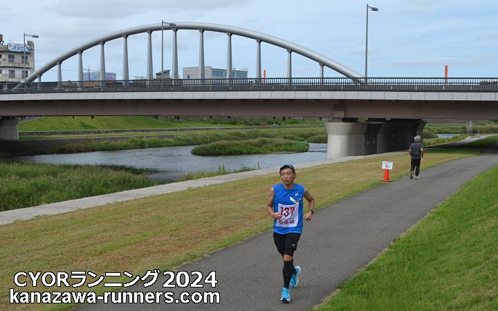 秋の犀川河川敷。毎回参加・取材しているCYOR大会です。金沢マラソンンの大会1ヶ月前の練習の場として定着しています。例年120〜150人程の参加者でしたが2021年からは300人を定員として募集。今回の参加者はxxx名です。 私は勤労者体育協会の秋の行事=登山とランニングに参加してきました。泉野校下町会連合会の役員をしていることで秋の行事が重なることがあります。今回は防災訓練が重なりました。私の役割は7町会をまとめる第4ブロック長。防災訓練では行事責任者となります。代理を頼むわけにいきません。防災訓練は8:00〜9:30。片付けを他の役員にお願いして、ランニング会場へ急げば、12:30分終了までの様子は撮影できそうです。大会事務局に今回はスタート写真は撮れないと連絡します。防災訓練を終えて、MTB(自転車)でコース入りします。上流側折返し点(犀川神社)から撮影開始です。顔なじみの皆さんの快走を応援、また新たな参加者が増えているのが楽しいところです。 北陸新幹線の金沢〜敦賀間は2024年3月に開業。今月で半年が経過しました。長野〜金沢間が開業したのは2015年。犀川に架かる新幹線橋は、この時から使用されていましたが、営業車両は3月から。かねてから、新幹線車両の通過とマラソン大会との組み合わせを考えていました。マラソンに挑戦する会が初めての機会、CYORは2回目です。新幹線車両の通過時刻とランナーの状況がカギとなります。 |
