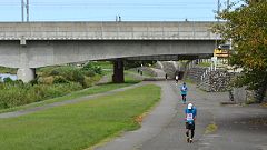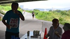 | 12時を経過。制限時間は残り30分。毎回、最終ランナーのフィニッシュを撮影しています。今、どの辺を走っているのかな。様子見に下流折返しまで行きます。最終走者Sさんが折り返したところ。並走してランニング談議。残り1キロで先回りしフィニッシュを待ちます。首を長くしている競技役員に10分くらいでフィニッシュと通知します。 今回はコースランに参加できませんでした。MTB(自転車)の走行距離は24kmです。 (自宅〜会場往復=8km、コース往復=16km) |