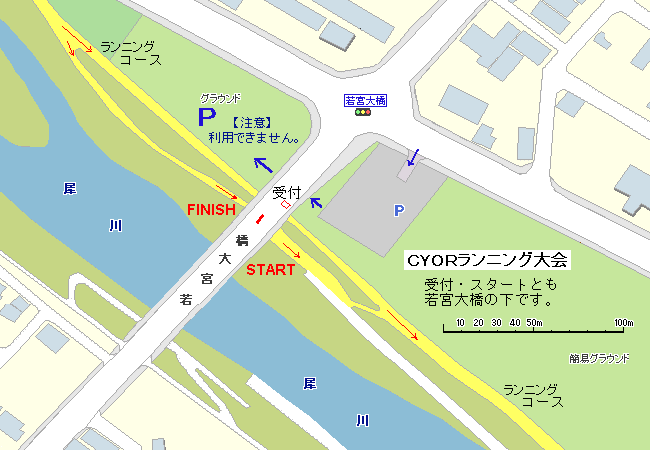 | 【注意】大会の駐車場・コースについて 従来使用していた、若宮大橋西側の駐車場は2010年大会から使えなくなっています。 大豆田大橋上流側(犀川右岸)の臨時駐車場をご利用ください。 犀川では、河川の改修工事、橋の架け替え・補強工事などが行われています。 大会時には、変更もありえます。詳細は大会申込書を参照。 |