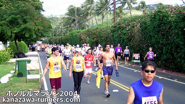 | カハラ地区を走る。35kmを過ぎて、歩きを交えるランナーが増えています。 | |