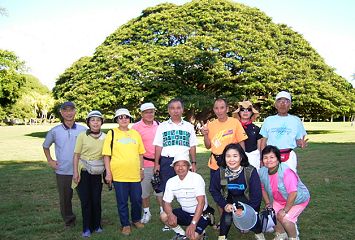 早朝練習を済ませ、食事後出発です。往きはバスでクレーターまで。返りは北側の外周道路をワイキキ海岸まで歩き、ホテルのビーチバーで休憩。皆さん歩くことを苦にしません。