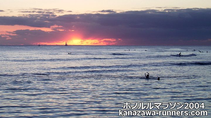 | ワイイキキ海岸=夕陽を楽しんでから食事です |