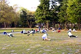 1年間ごとに、参加率のすぐれている人たちに 『継続は力なり』 と刻んだトロフィーを贈るものである。 この賞を私たちは一番高く評価している。夏は午前6時、冬(11月〜3月)は午前7時より約2時間、毎日曜日は必ず実施する。雪の日もあり、膚をさす寒い日も、そして仕事で疲れていることも克服してマイカー、自転車、そして足で参加してくる。 平成4年度も、49回以上の6名にトロフィーを贈る。この人たちは年間3回以内の欠席の人たちである。 大会に参加するため、定例会に来なければ欠席となるから、なかなか厳しい条件である。週1回の定例会に参加するのを楽しみにして、定刻15分前にもう顔を見せる人もいる。 |
