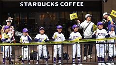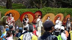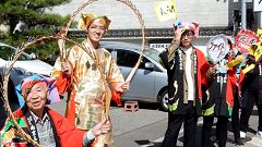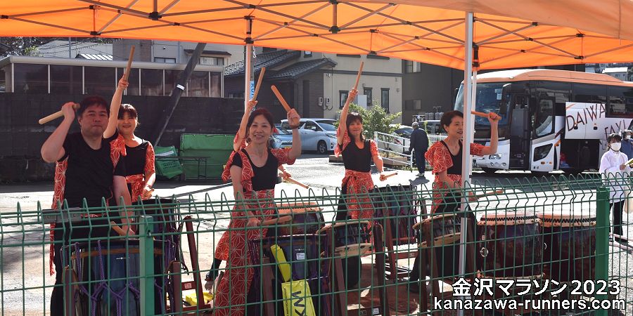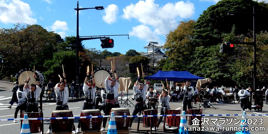 | 兼六園下の応援=加賀豊年太鼓=コース南部を一巡してきました。 | ||