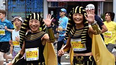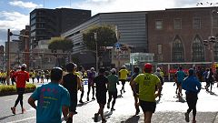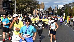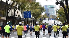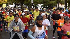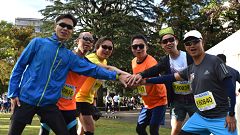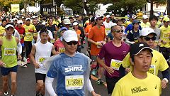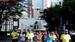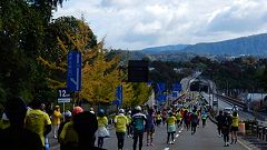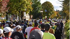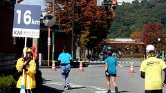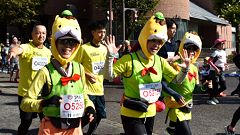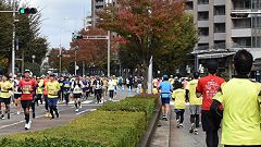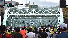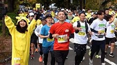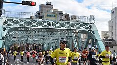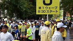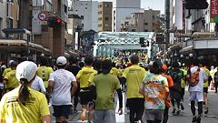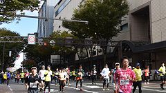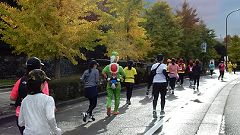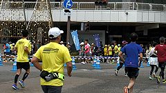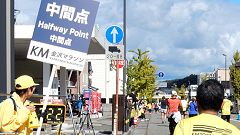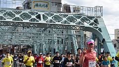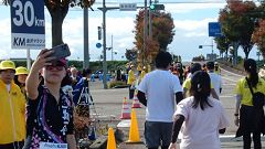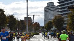 会場入りから一眼レフカメラで撮影モード。市街地中心部の撮影スポットとランナーの列・応援などを組み合わせます。11kmからコンパクトカメラに持ち替えてランニングモードに切り替えます。撮影を減らしてタイムロスを回復する予定ですが、市街地での停止・ダッシュの繰り返しで、10km過ぎから脚に疲れの気配。歩きを交えて時間内のフィニッシュに徹する作戦に切り替えます。沿道では沢山の知人の応援を受けます。今回も応援・ボランティアの皆さんに声をかけながら、撮影ランを楽しみました。 |